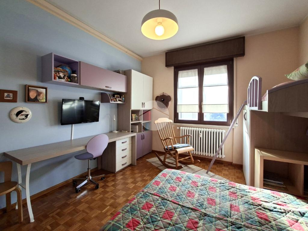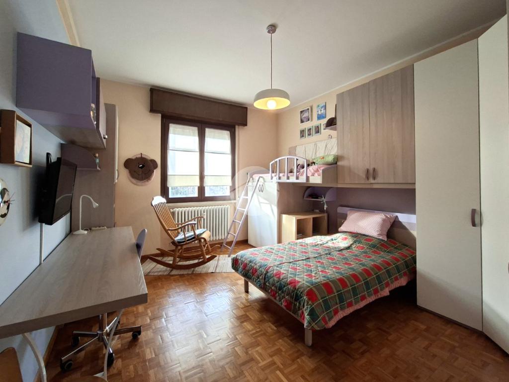 La zona notte, ben separata da un secondo disimpegno, ospita una camera matrimoniale, una comoda cameretta e un bagno finestrato completo di doccia.