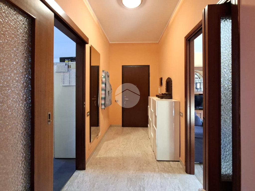 L'ingresso, pratico e funzionale, conduce direttamente alla spaziosa zona giorno, composta da un luminoso soggiorno con accesso a un ampio balcone e da una cucina separata e abitabile, anch'essa dotata di un balconcino di servizio.