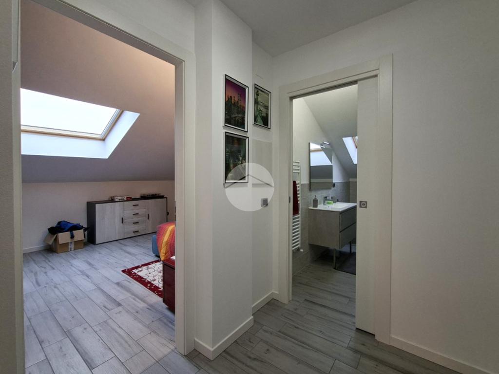 La zona notte è composta da una spaziosa camera matrimoniale e da un bagno finestrato completo di doccia, rifinito con materiali attuali e di qualità.