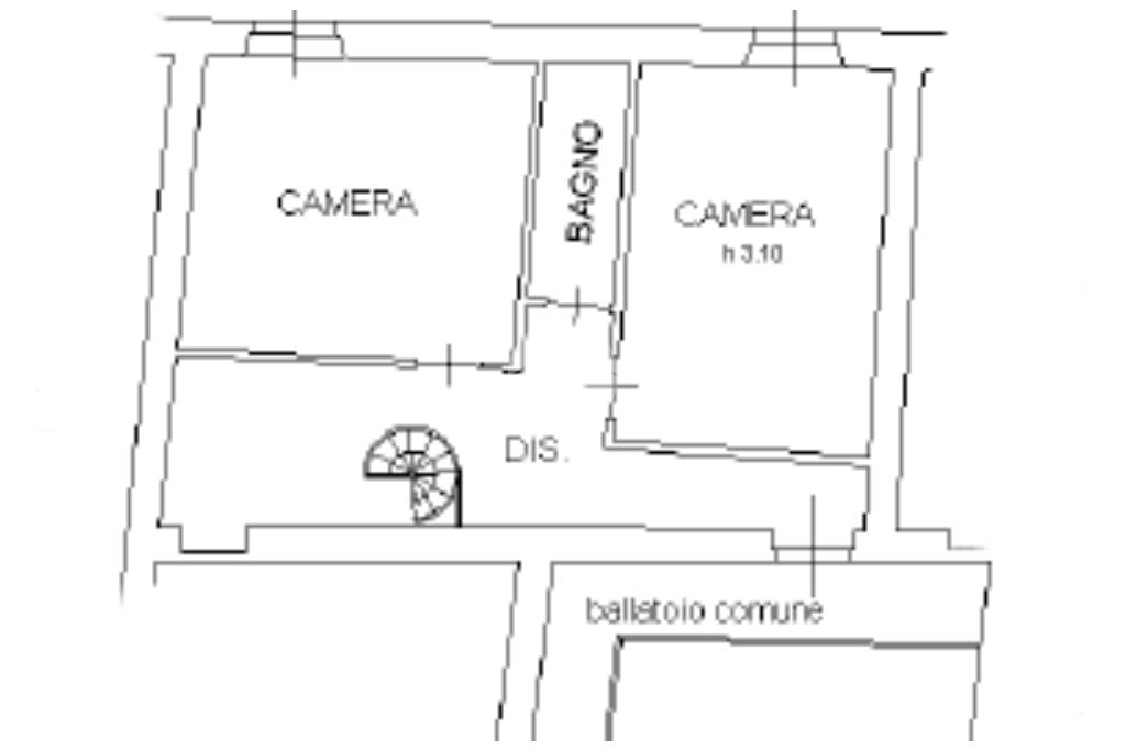 In caratteristico contesto cortilizio nel centro del paese, proponiamo trilocale disposto su due livelli abitativi.